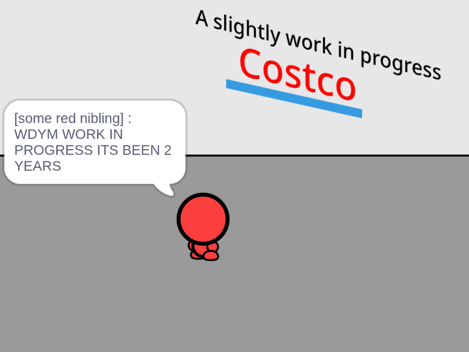 school happenened (still is) and wow i havent updated in 3 months. apologizes for not having updated in 3 months but hey heres a new update and wow prepare for a long update (so much happening in the world and in my life). regarding updates for nibling lapping challenge (go check it out the prototyle released a while ago), i still need to make it public on itch.io (game art is complete!) and release a minor update but i did make lots of progress on it gameplay wise so probably when i release the next major update, it will be visibly different comparing to the previous game. not only that but ive been planning out lore in regards of the niblings (if you dont know theyre the little circle people all around in this website) and they will have their own universe and whatnot in which the games with niblings would take place in! i will share more later but not now since i still am working on some aspects of it and i would prefer just sharing it as i develop on the whole thing more. in regards of updates with flappy bird, just go read the previous updates (tldr updates are at a standstill, not cancelled but no progress whatsoever). outside of my stuff back at the start of october if you didnt know kenstyle, the dev and owner of the cool site kensarcade.net has enterred into the navy (non-combative role, he might come back briefly soon), many of tagg3d and i miss him and if you see this COME BACK MAN WE MISS YOU! anyways ok so in regards of the world, its terrible and things can get better eventually but it wont happen soon unfortunately. that doesnt mean that its never gonna happen tho cuz i do believe things will get better at some point, so for now just try to not overthink things and just take things in slowly, calm down and relax yourself with something that you enjoy (go for a walk or drink water or listen to good music or whatever idk something positive at least). i do wana share a small story about something recent but idk really and i might regret this later finding myself to be cringe yet here it goes (i wont give lots of detail but if you do know me and you know the stuff then you know it congrats): back in march there was an event my school did cuz our group was invited to something and we could present our projects and whatnot. i didnt expect much of it really and things started all fine, but there would be a person that i would notice from a distance and something told me that they seemed to be a cool person. i wanted to talk to them but i felt nervous with doing so cuz i didnt want to mess something up and now they find me annoying or find me boring and there would be this split where i wanted to go up but i didnt want to out of fear, and this was happening for the whole time in the event. surprising, i did talk to them but that was when they came over to our table (they were seeing every table there was) with the projects and i was presenting what our group did. that section of the event would be over and i thought it was done and all over but i forgot there would be tours (this was at a university btw sorry i forgot to mention) and with all the luck there was, out of all people, that person went with us in the group alongside a few other people so that meant there was more time to try talking. for the whole time i tried deciding what i was gonna say but i still got too nervous, hell there were points in the tour where i noticed that they were right next to me and i couldve said something. in the end, the tour would end and i never got to talk to them, having that regret for a while even afterwards. eventually in october (last month as of writing this) another event at the same place would be held and i felt that there could be another chance but at the same time there could be a chance they dont go and really for most of the event i couldnt find them so yea they probably didnt go. the event provided lunch too and our group would go eat when one of my teachers (the mentor of our group) pulled me aside. beforehand after a few days of the event i told him about this person i wanted to talk to but afterwards i kinda forgot i told him and i didnt expect that he'd remember but he somehow did and told me that the same person i wanted to talk to from last event was here again and they were just at our table. i legit didnt know whether to finish my food or just go but i just got up and went to go see, and at first i didnt recognize but yea it was indeed the same person. i got nervous again but my teacher and even the principal and vice principal (they were there too cuz of our school being there) encouraged me to go, so i would kinda go up to that person to not let them down but i eventually did get to talk to who i wanted to talk to since last event. from what it seemed, they were fine with talking to me and i felt comfortable too and whatnot, well i was nervous at first still but as we kept talking things felt more at ease really (we were just talking about what we were into and we both like computer science and they also liked mechanical engineering, i mentioned at a point i made a website but didnt specify this lol), their friend was there too and it was interesting talking to them both. overall in the end i finally got to talk to who i wanted to talk to from the first event and i think i made a decent impression (at least i hope), also we didnt get in the same tour groups but we did pass by and we did wave so theres that too but yea thats all of it really. ok story over cuz this is getting too long but hey i interacted with someone which is something i never do at all with the fact that im super quiet in class. in the rarest of cases that person in the story is reading this: "hi, i was the one in the red jacket always carrying the subway box, idk what else but yea youre cool and hope youre doing well." ok this update is getting ridiculously long cuz of the story part but hey compare that with the previous and the first entries, promise next one wont be longer and hopefully arriving 